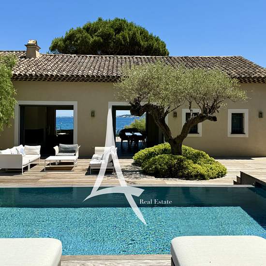 Au bord de la plage, cette villa spacieuse offre une vue imprenable sur les eaux turquoise du golfe, face à Saint-Tropez à 180 degrés. Grande piscine, terrasses baignées de soleil, terrain de pétanque... tout invite à la détente. Un point de vue unique sur les Voiles de Saint-Tropez. Depuis cette villa, vous profitez d'un panorama exceptionnel pour admirer les voiliers en majesté. Réveillez-vous avec les voiles, baignez-vous face à elles, déjeunez en les regardant glisser sur l'horizon. Un lieu rare, une scène grandiose à savourer depuis che...