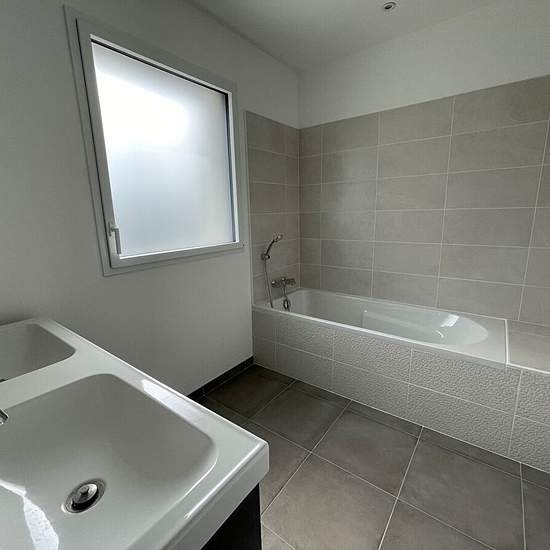 Rare à la location, maison neuve avec grand jardin comprenant: une entrée, un séjour avec coin cuisine aménagée et équipée, suite parentale comprenant une chambre dressing salle d'eau, wc garage avec porte électrique étage 3 chambres salle de bains (douche baignoire)