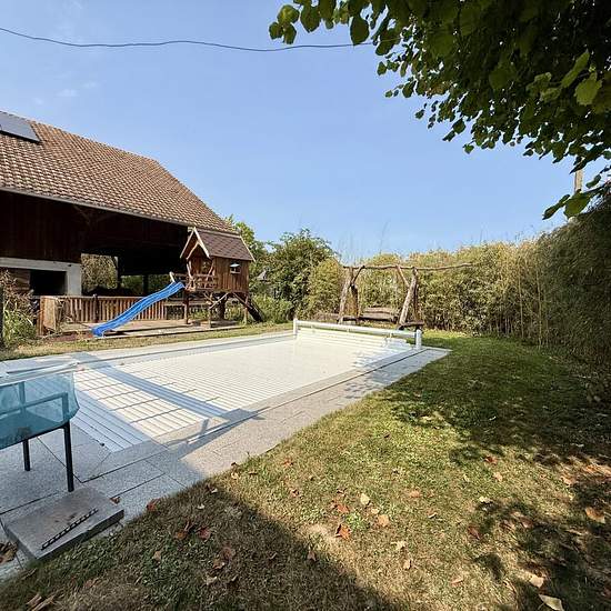 Maison alsacienne à colombages avec piscine – 180 m² habitables Charmante maison alsacienne à colombages de 180 m², implantée sur un terrain d’environ 450 m² avec jardin d’environ 200 m² et piscine. Située à proximité d’une autre habitation comprenant un centre équestre, cette maison est idéale pour une famille avec enfants et animaux, avec la possibilité de mettre un cheval en pension. Elle se compose : au rez-de-chaussée : d’une salle à manger avec cheminée en bois, d’un salon et d’une cuisine séparée, à l’étage : de deux chambres et d’une...