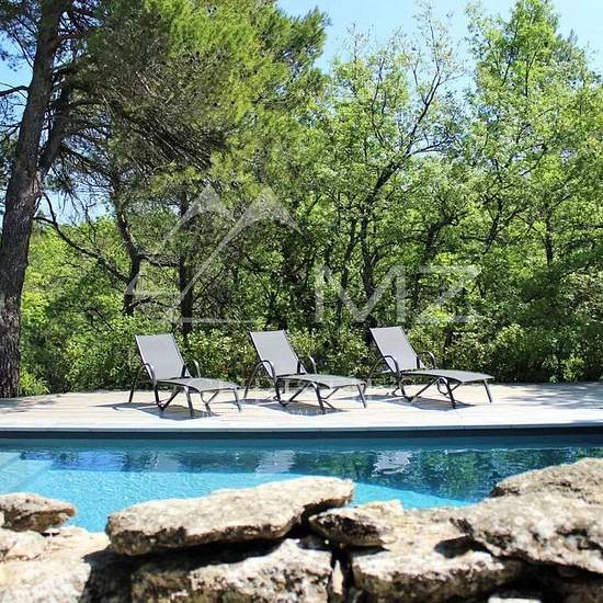 Proche des villages de Ménerbes et Lacoste, au milieu des bois et au calme absolu, authentique bergerie provençale, restaurée avec goût et sobriété, sur un terrain de 6 000 m² arboré de chênes et de pins. De la piscine, vous profiterez d'une belle vue sur le Luberon et le Mont Ventoux, en toute quiétude. Des terrasses ombragées, un boulodrome, des départs de randonnées directement depuis la bergerie, pour des vacances inoubliables en famille ou entre amis. A l'intérieur des murs en pierre épais conservant parfaitement la fraicheur, 4 chambre...