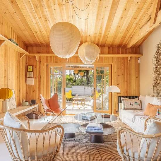 Discrètement niché au cœur du Cap Ferret, à quelques pas de l'océan et de la plage de l'Horizon, le Solara Lodge invite à une échappée rare, entre élégance naturelle et esprit cabane subtilement revisité. Conçue par un architecte de renom, cette propriété confidentielle incarne l'esthétique raffinée d'un surf lodge haut de gamme, où l'on cultive un art de vivre libre et sophistiqué, les pieds dans le sable, l'esprit tourné vers l'océan. Composé de cinq lodges en bois indépendants, subtilement rénovés, le Solara Lodge accueille jusqu'à 12 hôt...