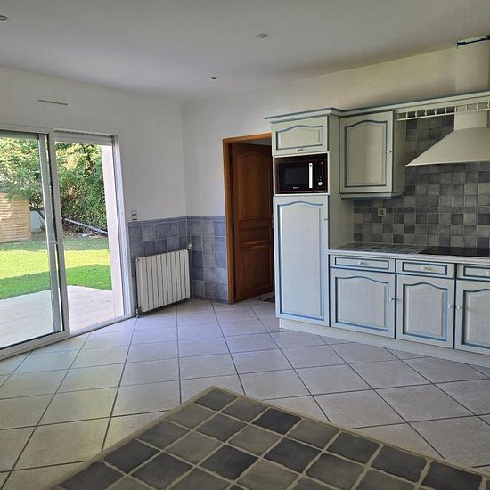 Maison type 6 en parfait état comprenant entrée avec placard, séjour avec clim et cuisine ouvert équipée (placards, plaque et hotte), cellier, 5 chambres dont 4 avec placard, 1 bureau, salle d'eau avec douche et baignoire, 2 wc, jardin clos avec cabanon. Chauffage gaz de ville et clim Libre rapidement Loyer 1 900 €, dépôt de garantie 1 900 €, honoraires 1 575 € (525 € pour l'état des lieux et 1 050 € pour la visite, la constitution du dossier et la rédaction du bail).