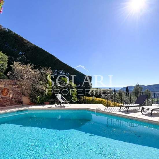 Location saisonnière : Dans un domaine sécurisé à Mandelieu-la-Napoule, à 5 minutes des commerces et de l'accès A8, à 10 minutes des plages et ports, et à 30 minutes de l'aéroport international de Nice, charmante villa avec piscine bénéficiant d'une vue panoramique sur la mer et l'Estérel. La villa pouvant accommoder jusqu'à 8 personnes se compose comme suit : En RDC une entrée desservant le grand séjour avec TV, la cuisine équipée attenante ainsi que 2 espaces salles à manger intérieur, le tout ouvrant sur une terrasse avec tables et chaise...