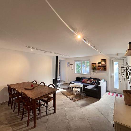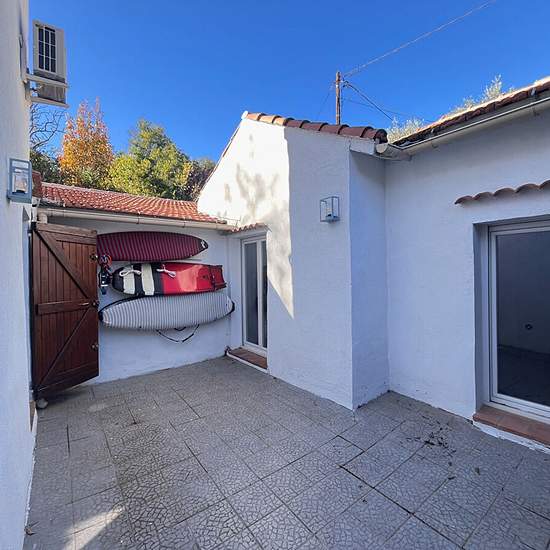 Bien rare à Marseille. Découvrez cette charmante maison à louer meublée (durée du bail de 12 mois) située à Marseille 12 ème au calme absolu, offrant un espace de vie généreux de 121.51 m² et sans vis à vis.. La maison se compose comme suit : Un séjour / salle à manger, une cuisine indépendante équipée, une buanderie, de 4 chambres dont une en mezzanine, d'un bureau, , d'une salle de bains et une salle d'eau avec WC. Vous profiterez d"une terrasse plein sud équipée d'un barbecue. Les plus ? La maison possède, un poêle à bois, plusieurs clima...