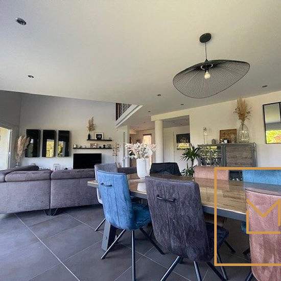Belle maison récente de 6PP comprenant : hall d entrée avec placard, séjour-salon, cuisine américaine aménagée et équipée, arrière cuisine, buanderie, chambre, salle de bains, dressing. Etage : 4 chambres, salle de bains et salle d'eau. Grand garage. Le tout sur 1.000 m² de terrain environ. Proche tous commerces, écoles et transports.