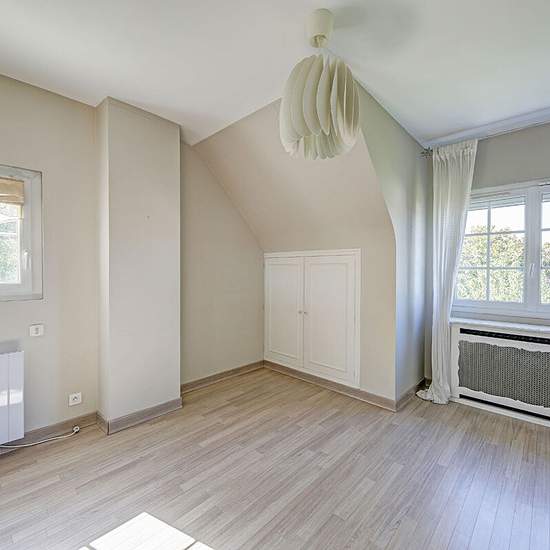 BURES - MORAINVILLIERS Au sein d'un environnement calme et verdoyant, offrant un accès rapide aux autoroutes A 13 / A 14, écoles, commerces, forêt, écoles internationales privés et publiques, Maison récente meublée et équipée bâtie en 1972 de 143 m2 loi Boutin sur 738 m² environ de terrain : Entrée, réception avec cheminée donnant sur jardin et terrasse, cuisine semi ouverte aménagée équipée, une salle de bains et wc séparés. A l'étage : Quatre chambres dont un bureau, une vaste salle de douches avec wc. Au sous-sol : un garage double avec p...