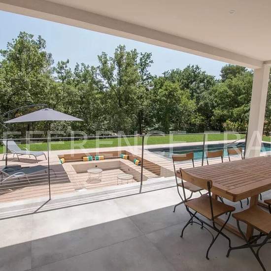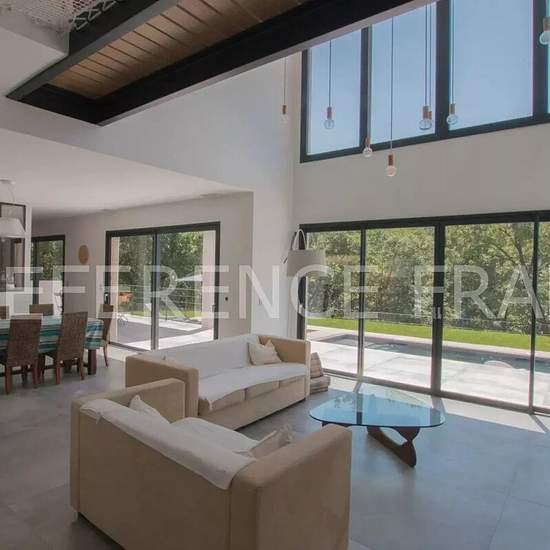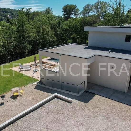 Quartier résidentiel recherché à proximité du village de Valbonne. Plein sud. Au calme absolu. Pas de vis à vis mais pas isolée non plus. Villa de 194 m² approx. En bas : Hall d'entrée avec WC invités, grand séjour, cuisine, arrière cuisine. Espace chambre parentale avec chambre, bureau, dressing, salle de bain (baignoire et douche) et WC. Le bureau peut aussi faire office de 4ème chambre et sera alors proche de la chambre parentale (idéal bébé ou petit enfant). En haut : 2 chambres qui se partagent une salle de bains avec baignoire et douch...