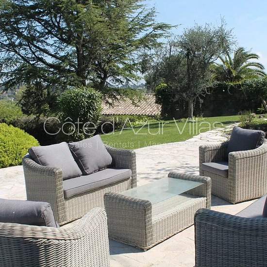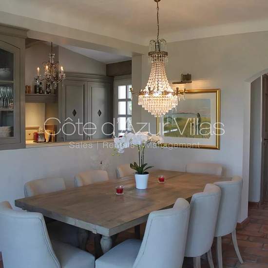 PAS DISPONIBLE Villa Bénédicte Villa Bénédicte est une propriété de 5 chambres très bien située à quelques minutes à pieds du village de Mougins. L'intérieur est joliment décoré dans un style néo-provençal et toutes les chambres bénéficient de la clim reversible. La villa offre une belle vue sur les collines, un beau jardin plat, une piscine d'eau salée et une agréable terrasse couverte avec cuisine d'été. Villa Bénédicte est une charmante propriété familiale située à quelques minutes à pied du village populaire de Mougins, offrant une belle...