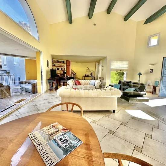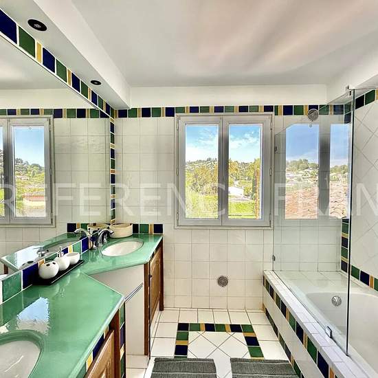 Idéalement située dans un domaine privé de Mougins à proximité du vieux village et des écoles internationales. Belle villa de 230 m2 édifiée sur 1 600 m2 de terrain paysagé avec piscine et pool-house. Elle offre une entrée desservant une spacieuse salle de réception ouverte sur la terrasse offrant séjour/salon TV, salle à manger, cuisine américaine avec îlot central et buanderie avec lave-linge et sèche-linge. La partie nuit propose 4 chambres avec dressing, salle de bain, salle de douche et toilette dont une chambre indépendante avec dressi...
