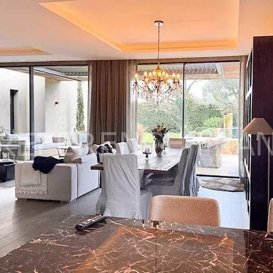 Votre référent immobilier local (Sébastien MENAND) vous propose. Disponible maintenant. Au calme absolu. Proche de l'étang de Fontmerle et et de la forêt de La Valmasque. Vraiment aucun vis à vis. Superbe villa meublée contemporaine de 250 m² approx principalement de plain pied comprenant séjour, salle à manger, cuisine et 5 chambres en suite. Piscine de 15 mètre de long. Terrain de 1500 m² approx. Très belles prestations. Hauteur sous plafond. Climatisation réversible partout. Location 12.000 € par mois pour 10 mois / période scolaire (à co...