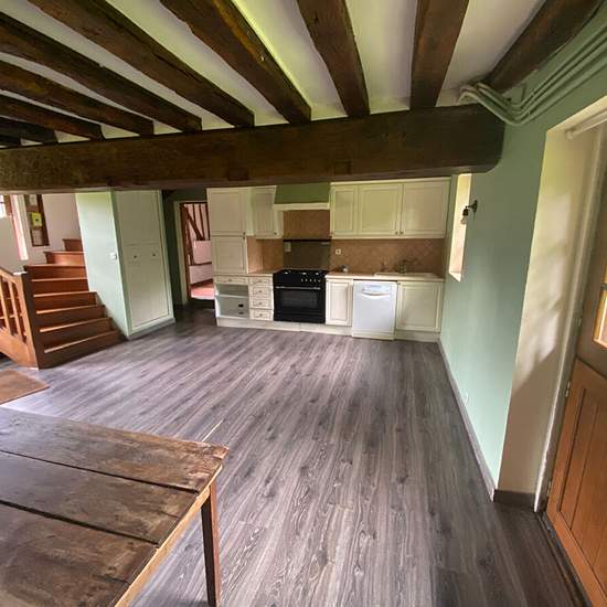 À louer : Charmante longère alliant authenticité et confort moderne, comprenant au rez-de-chaussée une grande entrée, une buanderie, une cuisine aménagée et équipée ouverte sur un vaste séjour lumineux, une bibliothèque et une chambre. À l'étage, vous trouverez une chambre avec salle de bains privative, un couloir desservant une seconde salle de bains et une autre chambre, un palier pouvant faire office de bureau, ainsi qu'une dernière chambre avec salle de bains et WC. Un atelier, une chaufferie et un jardin non clôturé complètent ce bien a...