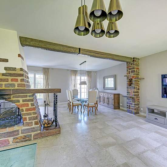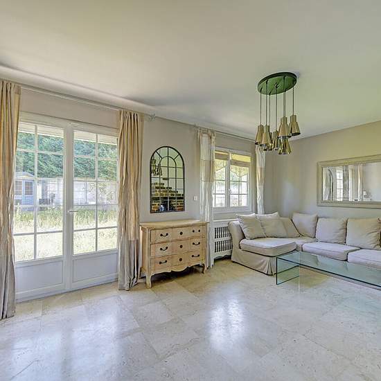 BURES - MORAINVILLIERS Au sein d'un environnement calme et verdoyant, offrant un accès rapide aux autoroutes A 13 / A 14, écoles, commerces, forêt, écoles internationales privés et publiques, Maison récente meublée et équipée bâtie en 1972 de 143 m2 loi Boutin sur 738 m² environ de terrain : Entrée, réception avec cheminée donnant sur jardin et terrasse, cuisine semi ouverte aménagée équipée, une salle de bains et wc séparés. A l'étage : Quatre chambres dont un bureau, une vaste salle de douches avec wc. Au sous-sol : un garage double avec p...
