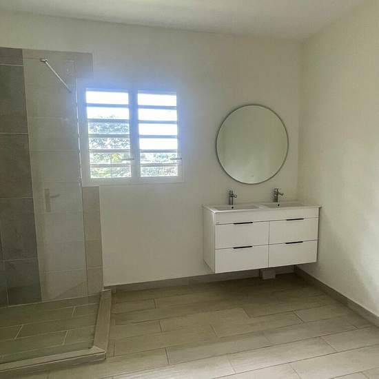 Maison À Louer. Nous proposons à la location une grande villa T6 non meublée située dans le secteur calme et prisé à Petit-Bourg. Au rez-de-chaussée, vous trouverez une cuisine aménagée, un séjour lumineux, un WC indépendant et une suite parentale avec salle d'eau privative. À l'étage, deux chambres climatisées, une salle d'eau et un WC indépendant. En rez-de-jardin, deux chambres supplémentaires et une cuisine aménagée sur la terrasse, offrant un espace indépendant. La villa dispose également d'un petit jardin privatif dont l'entretien ...