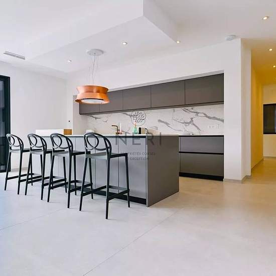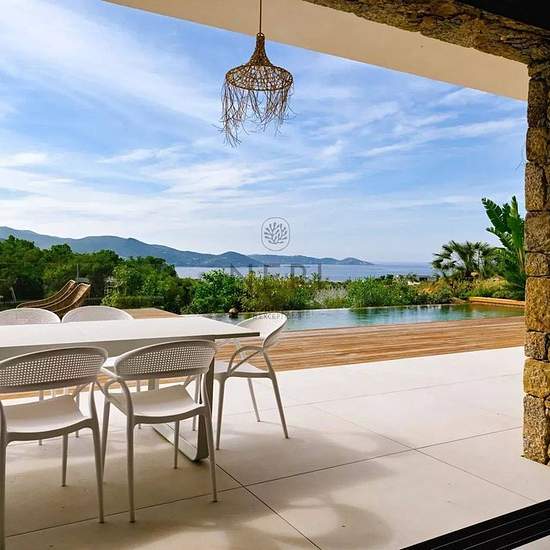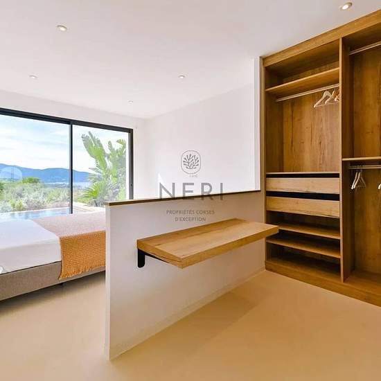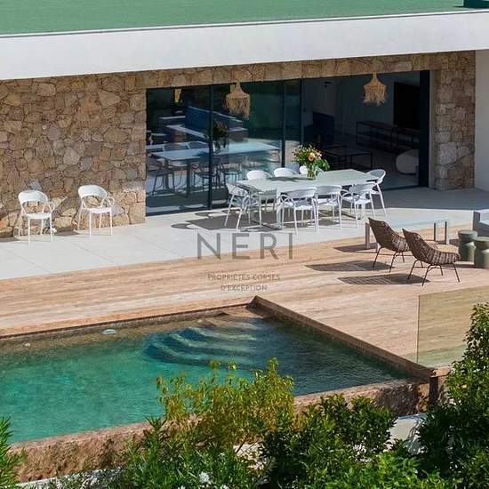 Découvrez cette villa d'architecte nichée sur la Rive Sud du Golfe d'Ajaccio, offrant une vue imprenable sur le golfe. Cette résidence d'exception s'étend sur environ 250 m² sur un terrain de 1,700 m², garantissant un confort de vie. L'architecture contemporaine de la villa est sublimée par de vastes baies vitrées à galandage, laissant entrer la lumière naturelle. La villa offre une très grande pièce à vivre de plus de 80 m², comprenant une cuisine moderne et entièrement équipée, un salon TV, et un espace repas intérieur. Cet espace convivia...