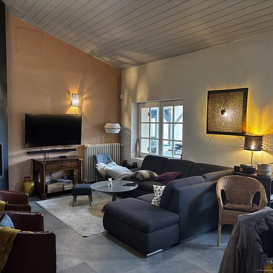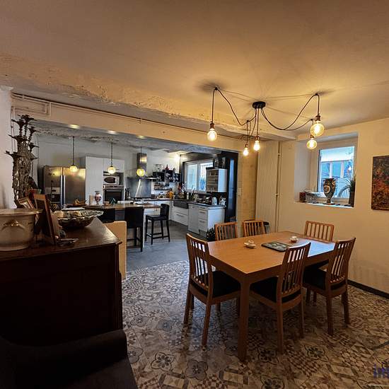 Maison duplex en pierre de 168 m2 comprenant au rez-de-chaussée : salon, salle à manger, cuisine équipée et meublée, cellier-buanderie, salle de bains avec WC et une chambre. À l'étage : deux chambres et une salle d'eau avec WC. Annexe attenante avec jacuzzi. Terrasse couverte, jardin clôturé d'environ 350 m2 avec remise. 3 places de parking, dont une avec borne de recharge électrique. Chauffage gaz de ville, insert à bois, double vitrage. Disponible début mai 2026 Loyer : 990 EUR / mois dont 20 EUR de provisions sur Charges (entretien chaud...