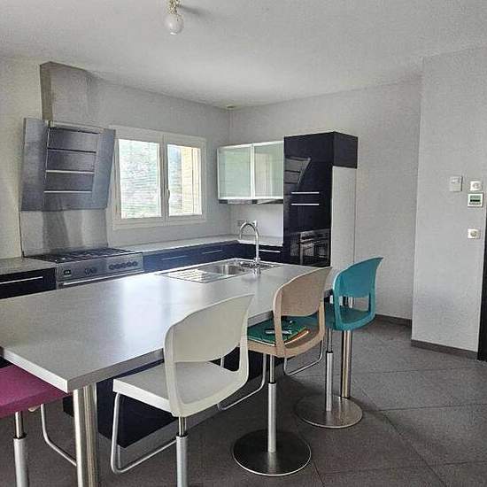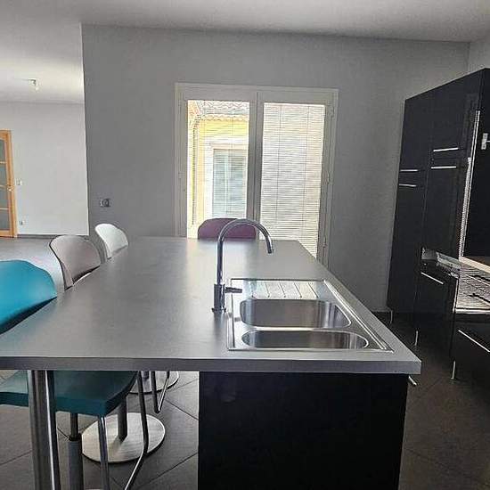 ROMPON - belle maison de 160 m² sur un sous sol complet de 250 m². A l'étage, une cuisine équipée ouverte sur un salon séjour avec accès sur les 2 terrasses, un dégagement, trois chambres, une salle d'eau, wc et une suite parentale avec dressing et salle d'eau donnant sur une terrasse. Pool house avec salle d'eau. SPA double de nage. Terrasse couverte. Terrain clos de 850 m². Double vitrage PVC. Chauffage par pompe à chaleur et + poêle à granulés. Loyer de 1 620,00 euros par mois charges comprises dont 120,00 euros par mois de provision pour...