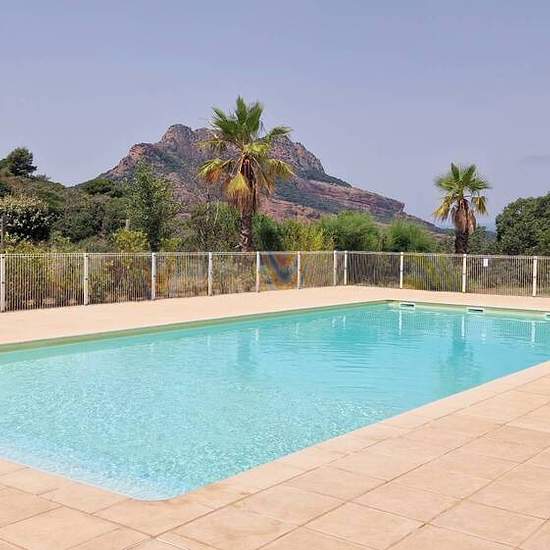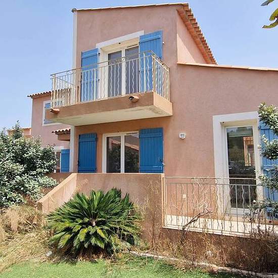 Location villa Roquebrune sur argens avec 3 chambres, garage, dans résidence avec piscine Quartier Sainte Candie au village de Roquebrune. Résidence avec piscine. Villa d'environ 110m² habitables (rez de chaussée + rdj, étage) et mitoyenne d'un côté. Rdc : Garage, bureau, pièce de rangement Rdj : pièce de vie donnant sur balcon-terrasse couverte-patio, cuisine donnant sur terrasse et jardinet, chambre, salle de bains, wc. A l'étage : 2 chambres dont une avec balcon, salle de bains, wc, terrasse. Place de parking nominative. Bon état général....