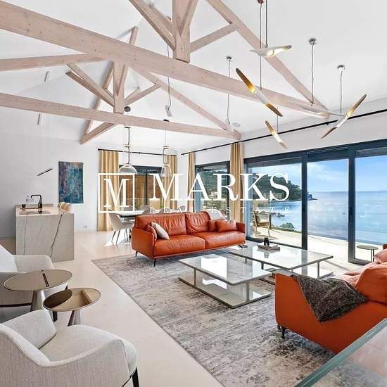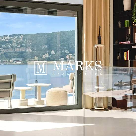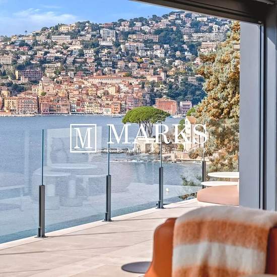 Perchée sur la prestigieuse péninsule de Saint-Jean-Cap-Ferrat, cette villa neuve offre une vue panoramique imprenable sur la baie de Villefranche-sur-Mer. D'une superficie d'environ 250 m², elle combine matériaux haut de gamme et design soigné pour créer une atmosphère de luxe discret. L'entrée s'ouvre sur un vaste espace de vie à la fois élégant et chaleureux. Les hauts plafonds cathédrale et la cheminée à éthanol apportent du caractère à la pièce, qui se prolonge harmonieusement vers la salle à manger, ouverte sur une grande terrasse ento...