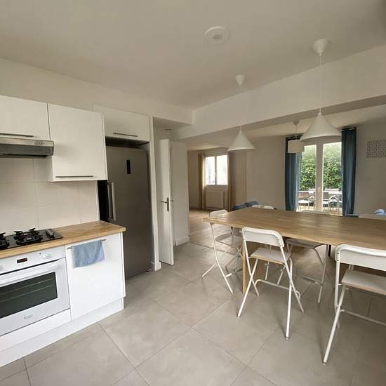 Maison meublée de 125 m² offrant de beaux volumes et une agréable luminosité, avec terrasse en bois et jardin privatif ombragé. Le bien se compose, au rez-de-chaussée, d'une entrée desservant un salon / séjour avec cuisine américaine équipée et aménagée. La maison dispose de cinq chambres réparties sur deux niveaux, de deux salles d'eau, de trois WC ainsi que d'une buanderie. À l'extérieur, vous bénéficierez d'un jardin privatif agrémenté d'un cabanon de jardin. Le loyer mensuel s'élève à 1 250 EUR charges comprises. Le dépôt de garantie est...