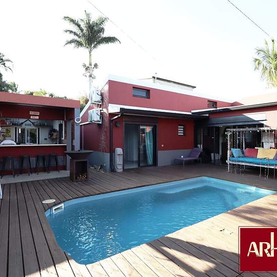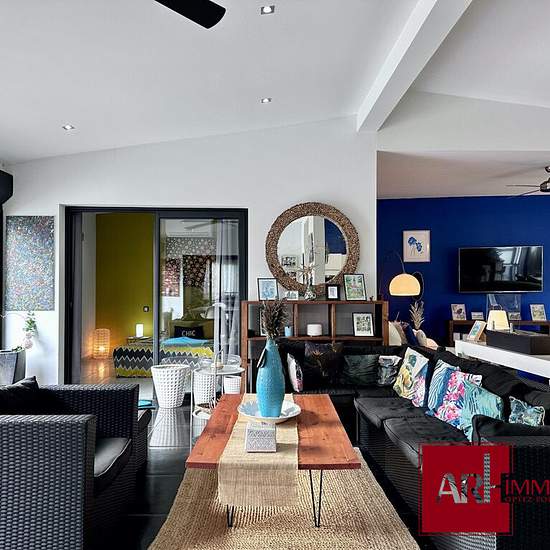 Location – Belle villa F4/5 meublée de standing à Saint-Gilles-les-Hauts Location longue durée Dans un environnement calme et résidentiel a 5 minutes de l’accès route des tamarins, ARH Immobilier vous propose à la location cette superbe villa meublée de plain-pied, édifiée en 2012, d’une superficie habitable de 175 m² sur un terrain clos et arboré de 695 m². Des espaces de vie lumineux et conviviaux Un vaste séjour traversant avec salle à manger, salon et cuisine ouverte (85 m²), donnant sur jardin arrière et vaste terrasse avant. Cuisine mo...