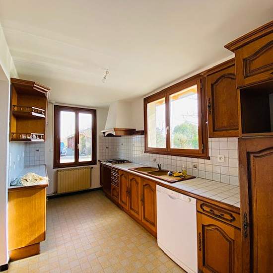 CAMPAGNE - Maison T6 à 10min de Gimont, composée au rez-de-chaussée d'un hall d'entrée, d'une cuisine meublée et partiellement équipée semi ouverte sur salon/séjour, de 4 chambres dont 3 avec placards aménagés, d'une salle de bains, et de WC. A l'étage : 1 chambre avec placards et un espace bureau. Une petite dépendance composée d'une chambre avec sa salle d'eau vient compléter le bien. A l'extérieur, profitez de la terrasse et de deux abris voitures, le tout sur un terrain non clôturé d'environ 3500m². Chauffage au fuel. A visiter sans tard...
