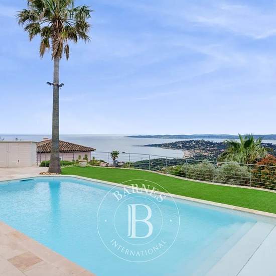 Située dans un domaine calme et résidentiel sur la commune de Sainte-Maxime, cette villa de 300 m² offre une vue sur la mer. A l'étage, quatre chambres en suite avec sa salle de douche/bain. Au rez-de-chaussée, une cuisine équipée ouverte sur une salle à manger et un séjour donnant sur de larges terrasses, deux chambres en suite avec chacune sa salle de douche/bain. Au sous-sol, un hammam, une salle de fitness, espace télévision avec bar, salle de douche. En extérieur, un jardin paysager, une piscine chauffée (sur demande et en supplément) a...