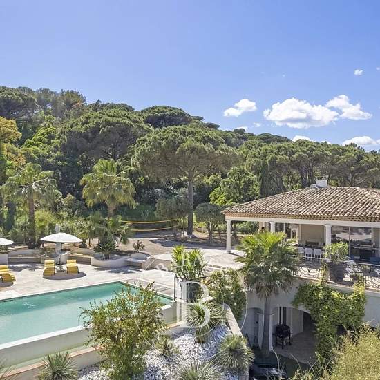 * Villa Francesca * Située dans un environnement calme à Sainte-Maxime, villa moderne de 350 m² édifiée sur un terrain de 3 000 m². La propriété se compose en deux parties, soit au rez-de-jardin, un salon, une cuisine équipée, deux chambres, 1 dortoir avec 9 lits ainsi que deux salles de bain/douches. Au niveau supérieur, une cuisine équipée, un salon, une salle à manger lumineuse donnant accès à une terrasse ombragée ainsi que quatre chambres avec salle de douches/bain. En extérieur, un jardin, une piscine chauffée (sur demande et en supplé...
