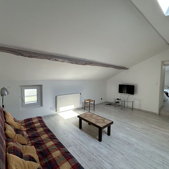 À ne pas louper ! Maison meublée de 132 m² pouvant accueillir jusqu'à 12 personnes, située dans un hameau au calme sur la commune de Thurins. Elle est composée au RDC d'une cuisine équipée avec salle à manger, un salon, 2 chambres avec lits doubles, une salle de bains et WC séparés. À l'étage, une chambre avec lit double, une chambre avec 4 lits simples, un salon avec canapé convertible et une salle d'eau avec WC. Le bien est accompagné d'une terrasse ainsi qu'un jardin arboré. Parking extérieur. Location courte durée possible (minimum 1 moi...