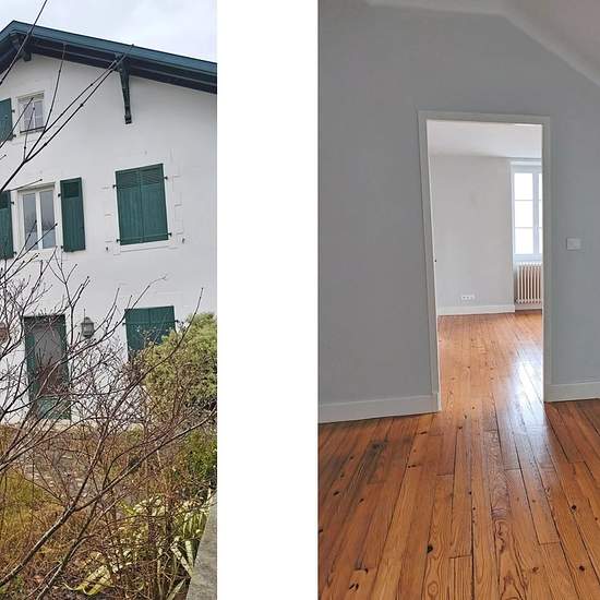 Située au Bourg d'Urcuit, maison mitoyenne(sur un côté)d'une surface habitable de 185 m2 avec terrasse, jardin clos et garage. Elle est composée d'une entrée par un vaste séjour cheminée donnant sur terrasse et jardin, une belle cuisine aménagée et semi équipée, une buanderie, un wc. On accède au 1er étage par un escalier majestueux donnant sur un vaste hall à l'espace nuit comprenant : une première chambre avec placard & balcon, une suite avec salle d'eau wc & balcon, une troisième chambre avec dressing , une salle de bains wc. Au 2ème & de...