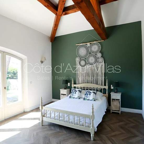 DISPONIBLE DE SEPTEMBRE 2025 À JUIN 2026 Cette villa entièrement rénovée offre 5 chambres et 3 salles de bains, de superbes intérieurs, une grande piscine clôturée et un jardin plat. La villa est idéalement située dans un quartier résidentiel paisible à pied du village de Plascassier, 5 minutes en voiture du village de Valbonne et 15 minutes de Sophia-Antipolis et des écoles internationales. Entièrement rénovée, elle se compose au rez-de-chaussée d'un grand salon / salle à manger avec de hauts plafonds, des poutres en bois traditionnelles et...
