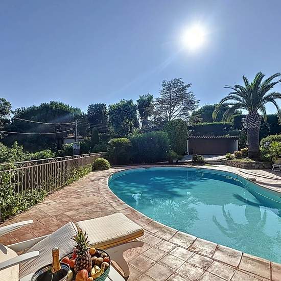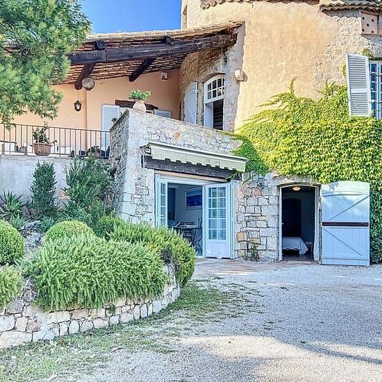 Située au calme, sur les hauteurs de Vallauris, cette charmante villa provençale offre une vue imprenable sur la mer et le Cap d'Antibes. Au rez-de-chaussée, la villa se compose d'un salon lumineux, d'une salle à manger conviviale, d'une cuisine équipée, d'une salle de douche, ainsi que d'une terrasse cosy avec vue mer. À l'étage, une suite avec salle de douche et terrasse privative vue mer, une seconde chambre, ainsi qu'une salle de douche indépendante. Au niveau inférieur, deux autres chambres en suite, dont l'une avec salle de bain et l'a...