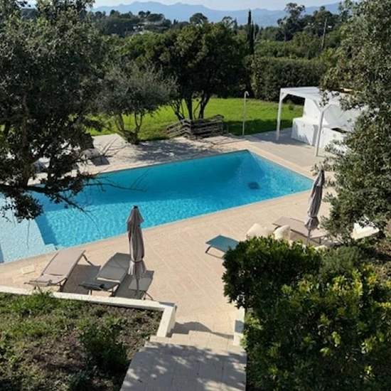 LOCATION A L'ANNEE EN JANVIER - Cette superbe villa d'architecte, en position dominante dans le prestigieux domaine résidentiel de Super Cannes, offre un cadre paisible et sans vis-à-vis. Elle s'étend sur environ 350 m² ayant un magnifique aperçu mer, avec vue sur les îles de Lérins et le Cap d'Antibes. Récemment rénovée et climatisée, elle dispose d'un terrain paysagé d'environ 3 000 m². Rez-de-chaussée : Hall d'entrée avec vestiaire et toilettes invités. Quelques marches mènent à un séjour spacieux et lumineux comprenant un salon, une sall...