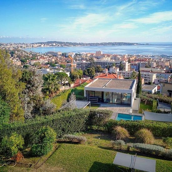 Le prix indiqué correspond à un tarif hebdomadaire et est susceptible d'être ajusté en fonction de la saison et des événements majeurs, notamment durant les périodes de congrès. Dominant la baie de Cannes, cette remarquable villa contemporaine offre une vue mer panoramique spectaculaire dans un cadre exclusif. Conçue pour profiter pleinement de la lumière et des paysages méditerranéens, la propriété dévoile de vastes espaces de réception ouverts sur l'extérieur : un élégant séjour, une salle à manger et une cuisine américaine entièrement équ...