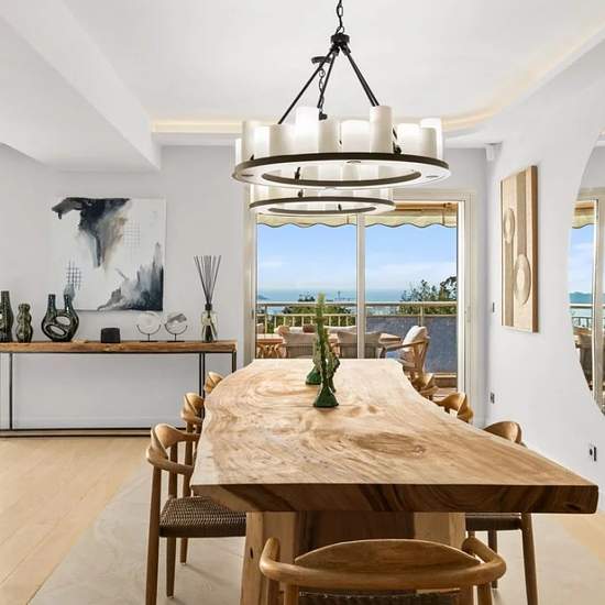 Au cœur du prestigieux secteur de La Californie, au sein d'une copropriété sécurisée, cette villa de 315 m², entièrement rénové, offre une belle vue mer des îles de Lérins et la pointe du Palm Beach. Réparti sur deux niveaux, l'appartement villa bénéficie de beaux espaces de vie, d'une chambre de maître traversante, de 3 chambres en suite et d'une salle de sport. Son jardin privatif se compose de deux terrasses de 44m² et 80m². Prestations supplémentaires: Salle de sport-Piscine en copropriété-Gardien-alarme-Garage 3 voitures Rez de chaussée...