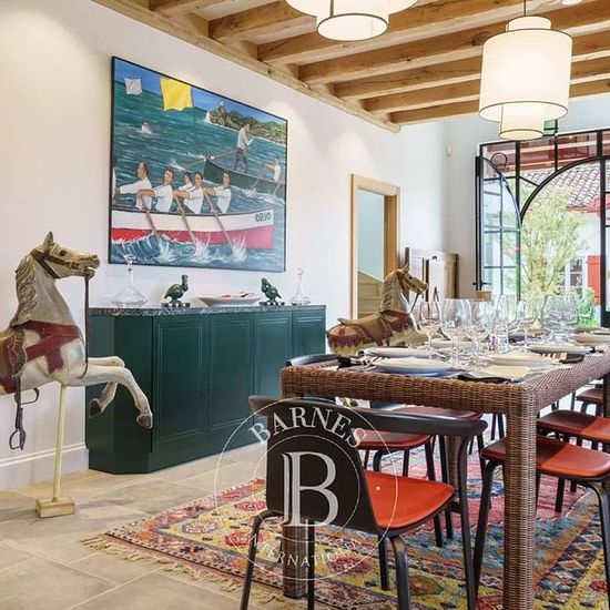 Dans un environnement bucolique et préservé, découvrez ces anciennes écuries transformées en villa d’une capacité de 11 personnes avec piscine chauffée*, court de tennis et boulodrome. Au rez-de-chaussée, la villa Gorria vous offre une spacieuse salle à manger pour partager de conviviaux repas, un salon cosy avec sa cheminée fonctionnelle et son coin TV et une cuisine richement équipée. La villa offre aussi une arrière-cuisine équipée de son propre réfrigérateur et de sa machine à glaçons pour toujours plus de confort. Une buanderie et un to...