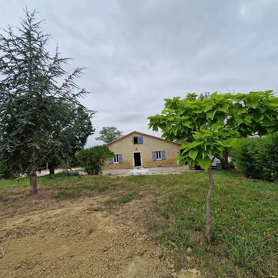 A LOUER A 10min d'Auch Maison Gasconne Type 7 en campagne. Dans bel environnement grande maison gasconne de plain pied d'environ 190m² habitables comprenant grande entrée, spacieuse pièce de vie avec cheminée insert, cuisine semi-équipée, grand jardin d'hiver, 5 chambres, un bureau, grand cellier/buanderie. Système de chauffage avec insert et répartition de chaleur, radiateurs électriques, cumulus thermodynamique neuf. Terrain arboré avec grange pour abri voitures. En cours de restauration, libre courant Octobre.