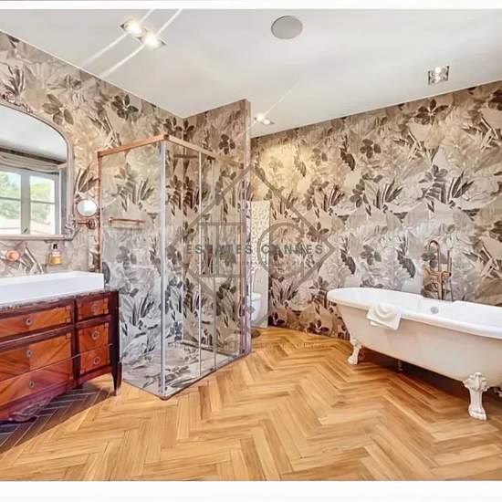 À louer, villa d'exception à Cannes Montrose, disponible immédiatement. Découvrez un chef-d'œuvre de luxe niché au cœur de Cannes, à seulement 7 minutes de la célèbre Croisette. Cette magnifique villa de 5 chambres en suite s'étend sur deux niveaux, offrant un cadre de vie idyllique pour ceux qui recherchent le confort et l'élégance. La villa dispose d'un vaste salon accueillant, idéal pour recevoir, et d'une cuisine entièrement équipée pour les amateurs de gastronomie. Chacune des quatre suites spacieuses est dotée de sa propre salle de bai...