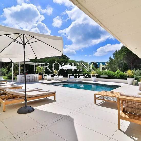 CASSIS - LOCATION MEUBLEE : somptueuse villa contemporaine offrant une vue imprenable sur la mer et le majestueux Cap Canaille. Étalée sur trois niveaux d'habitation et s'étendant sur près de 400 m², cette résidence incarne l'élégance moderne. L'espace de vie baigné de lumière, exposé plein sud, s'ouvre généreusement sur une terrasse grâce à de vastes baies vitrées. Une cuisine adjacente, entièrement équipée, et une buanderie offre praticité et fonctionnalité. La villa dispose de cinq chambres, dont suite master, six salles de bains et/ou do...