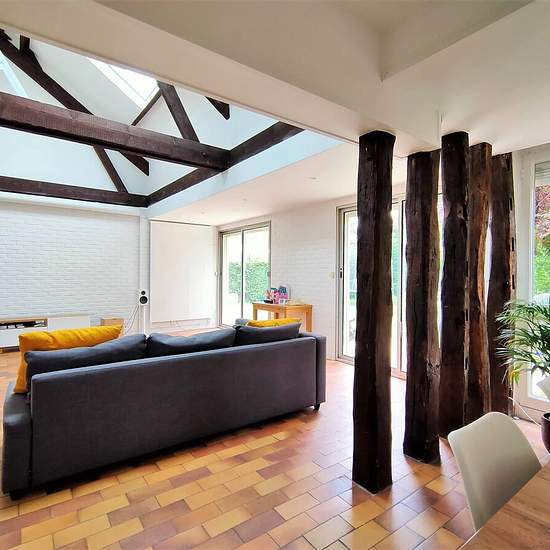 FEUCHEROLLES - Dans secteur résidentiel, à pied des commerces et de l'école - Maison en location meublée (POSSIBILITE EN NON-MEUBLE) - Elle se compose au RDC d'une grande entrée, un séjour / salle à manger d'environ 49 m² avec belles HSP, cheminée et accès au jardin exposé SUD, une cuisine d'époque équipée et totalement indépendante, 3 chambres, une SDD et un WC séparé. A l'étage : une mezzanine avec coin bureau, 2 belles chambres composées chacune d'une SDD et d'un WC (récemment rénovées). Pour le stationnement, vous avez à disposition un g...