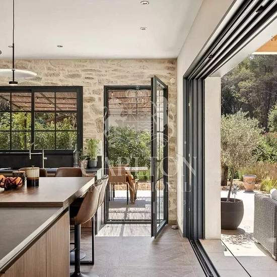 Nichée au cœur de la campagne grassoise, cette maison de 200 m² offre un cadre paisible. À quelques minutes du centre de Grasse, célèbre pour ses parfumeries, elle allie tranquillité et proximité des commodités. Un lieu de vie charmant, entre authenticité provençale et confort moderne. REF:1087LT -- Rez-de-chaussée : -Hall d’entrée avec vestiaire avec cellier et buanderie -Cuisine entièrement équipée, ouverte d'un côté sur la salle à manger et de l'autre côté sur une terrasse avec vue sur la piscine, équipée d'une baie vitrée à calandage. -S...