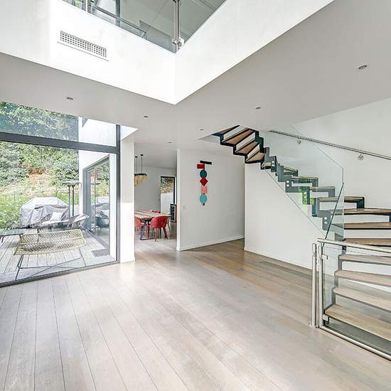 A 11 min à pieds de la gare de Bougival, Belle Maison d'architecte meublée édifiée 2013 de 327.91 m² avec un studio en sus, sur 1.001 m² de terrain : Au rez-de-chaussée : Vaste entrée, double réception de 50 m² environ donnant sur terrasse, une cuisine aménagée équipée avec espace salle à manger de 35 m² donnant sur terrasse, une arrière cuisine de 12 m², une suite parentale de 30 m² environ avec salle de douches. A l'étage : deux suites parentales de 40 m² avec salle de douches et deux chambres de 19 m² et deux salle de douches. Un studio i...