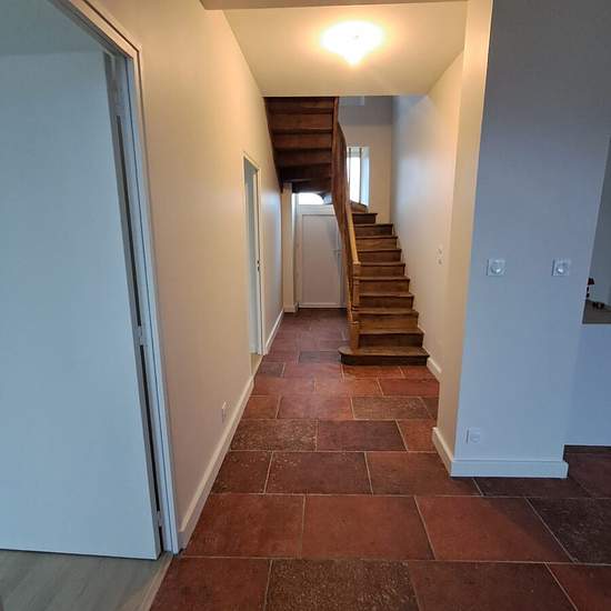 A louer sur la commune de LAURENAN (22230) très belle maison entièrement rénovée d'une superficie de 146 m² comprenant au RDC : entrée sur pièce de vie avec coin cuisine aménagée et partiellement équipée, poêle à pellets, une chambre parentale avec salle d'eau, un bureau, une buanderie, un WC, une grande dépendance. A l'étage : 4 grandes chambres et une salle d'eau avec WC. Au second étage un grenier non aménagé. Garage double accolé à la maison. Terrain derrière la maison d'une superficie de 1.580 m². Loyer mensuel 900,00 € + 50,00 € de cha...