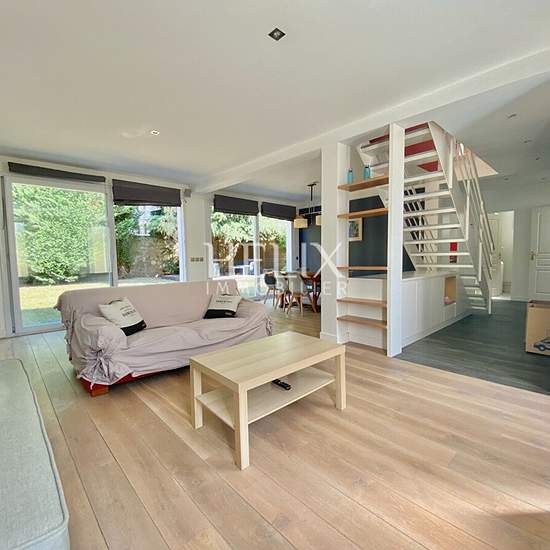 A propos de ce bien Une jolie maison de 165 m² au Vésinet, idéalement située au fond d'une petite allée, à 10 minutes à pieds de la gare RER A Vésinet-Centre et proche de la Bristish School de Croissy-sur-Seine. Elle se compose au rez-de-chaussée d'un très grand espace de vie donnant sur le jardin, une salle à manger et une belle cuisine aménagée et équipée. Au première étage, une suite parentale avec salle de bains, deux chambres et une salle de douche. Un grand studio indépendant de 35 m² pouvant faire office de 4ème chanmbre ou bureau. S...