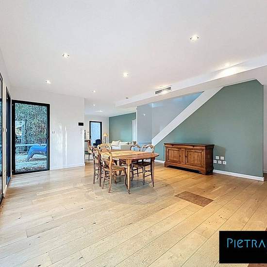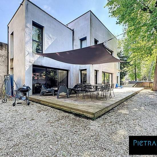 Location maison meublée avec piscine hors-sol 8 boulevard des Provinces 69110 Sainte-Foy-lès-Lyon À la limite de Sainte-Foy-lès-Lyon et Lyon 5ème, au coeur du quartier Saint-Luc, je vous propose cette maison contemporaine de 2011, rafraichie en 2025, de 140m² + bureau de 29m2 sur un terrain de 961 m². Au RDC, un séjour / salle à manger de 45 m², cuisine équipée séparée de 14 m², buanderie, WC et une grande pièce supplémentaire idéale pour bureau, salle TV ou 5ème chambre. À l'étage : 4 chambres dont une suite parentale (salle d'eau + dressin...
