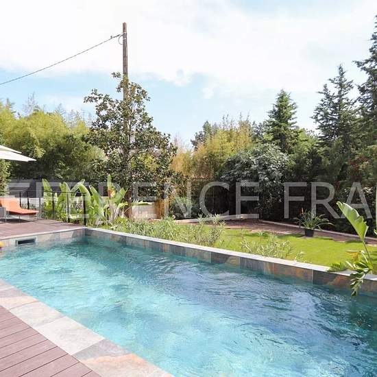 Votre référent immobilier local de Mougins (Sébastien MENAND) vous propose. Location meublée pour 1 an renouvelable (possible jusqu'à fin juin 2026 à un peux inférieur). Au calme absolu. Un petit bijou à pied de l'école international Mougins British School. Villa qui vient juste d'être finie. Vous serez le premier à habiter cette merveille. La villa fait 260 m² habitables approx et disposent d'une grande pièces de vie avec cuisine américaine ainsi que 6 superbes chambres toutes en suite (avec dressing et salle de bains). Très belles prestati...