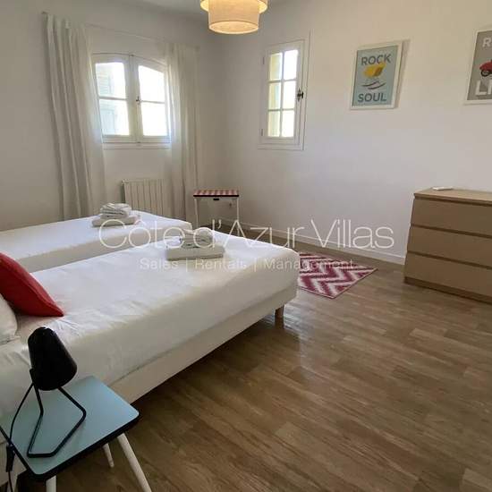 DISPONIBLE DE SEPTEMBRE 2025 A JUIN 2026 Spacieuse villa familiale de 238 m² à proximité de Cannes avec vue sur le village de Mougins. Emplacement idéal pour les écoles internationales et Sophia Antipolis. Rez-de-chaussée : Grand séjour ouvrant sur une terrasse et le jardin, espace salle à manger ouvrant sur une terrasse avec coin repas, cuisine entièrement équipée, WC invités, buanderie, deux chambres partageant une salle de bains et un dressing. Mezzanine : Espace bureau / chambre ouvrant sur une terrasse avec vue sur le village de Mougins...