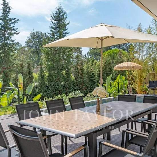 Disponibilité : 12 mois ***** Découvrez cette belle villa située dans le quartier prisé à Mougins, parfaite pour ceux en quête de confort et de modernité. La villa propose 6 chambres spacieuses, toutes habillées de grandes fenêtres coulissantes qui laissent entrer la lumière naturelle. Les équipements incluent l'air conditionné, un système de double vitrage et des volets électriques, garantissant un confort optimal tout au long de l'année. L'extérieur ne manque pas de charme, avec une piscine élégante entourée d'un jardin magnifiquement amén...
