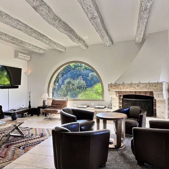 Location courte ou longue durée. Tarif sur demande en fonction de dates de location. Magnifique propriété au calme absolu au coeur de Mougins. La villa se compose de 5 chambres, dont un salon au rez-de-chaussée avec un lit-canapé, 4 salles de bain et 5 toilettes. La salle à manger peut accueillir au moins 12 personnes et le salon est équipé d'une grande cheminée. Le terrain comprend une grande terrasse avec un barbecue et une table à manger pour 12 personnes. Une belle piscine de 3 mètres de profondeurs et une piscine séparée pour les enfant...