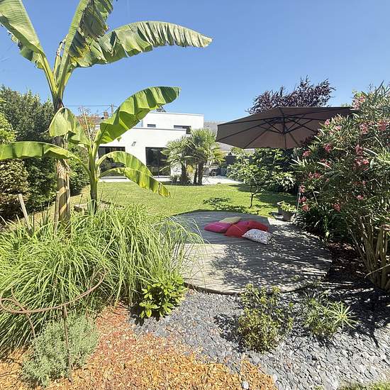 Nouvelle location maison d 'architecte, en exclusivité par IM'MOTION. Maison d'architecte de 2015 de 160m2, située rue des Fleurs, proche facultés. Composé: - Très belle pièce de vie de 50m2 avec cuisine ouverte aménagée équipée donnant sur terrasse exposée ouest. - Salle télé/bureau/chambre d'amis. -Suite parentale, dressing salle d'eau (double vasque). -Buanderie. -WC. A l'étage: - Grand pallier/ bureau. - Deux belles chambres, placards. - Salle d'eau. -Grand jardin arboré de 350M2. L'entretien du jardin, (2h/mois),est compris dans le loye...