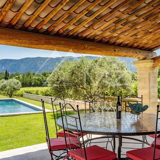 A 5 mn du village typiquement provençal d'Oppède, superbe mas restauré de plus de 200 m² face aux vignes et au Luberon. Cette propriété peut confortablement accueillir 8 hôtes qui seront séduits par le charme et la décoration contemporaine de celle-ci. Bassin de nage 16 x 4 m avec pool-house. Belles prestations.
